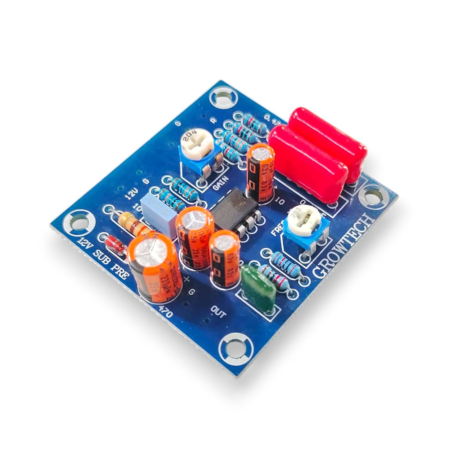 Growtech 12V SUBWOOFER PUNCH BASS Pre-Amp Low Pass Filter Board | DC12V–16V Single Supply | 80Hz–120Hz Adjustable Frequency Control | for Car & Home Audio