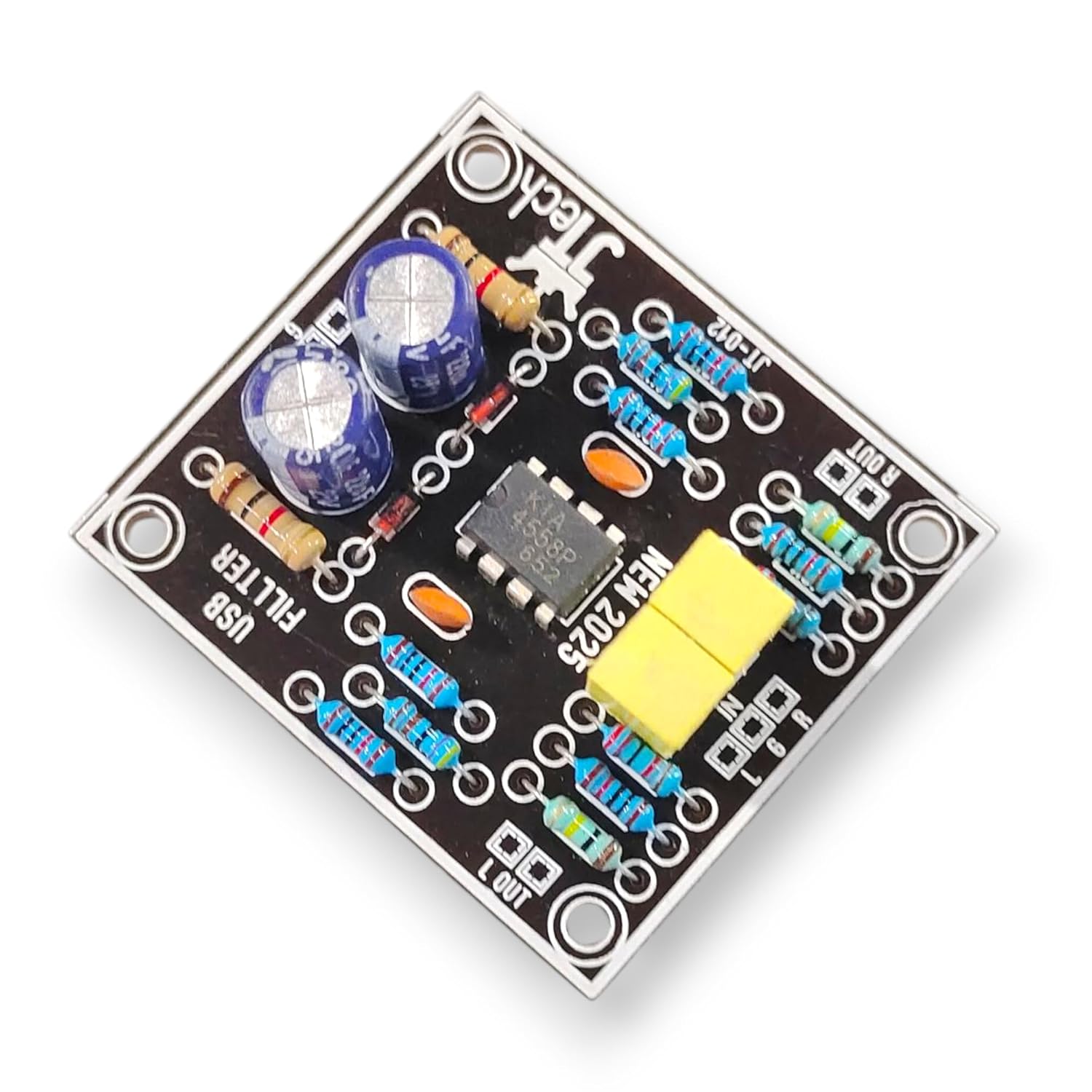 JTECH STEREO USB Audio Filter Board, with Inbuilt Audio Gainer & Noise Reduction | Dual Supply DC12V to 45V | Stereo Input | Class AB Amplifier Compatible